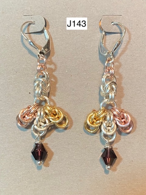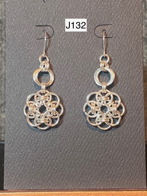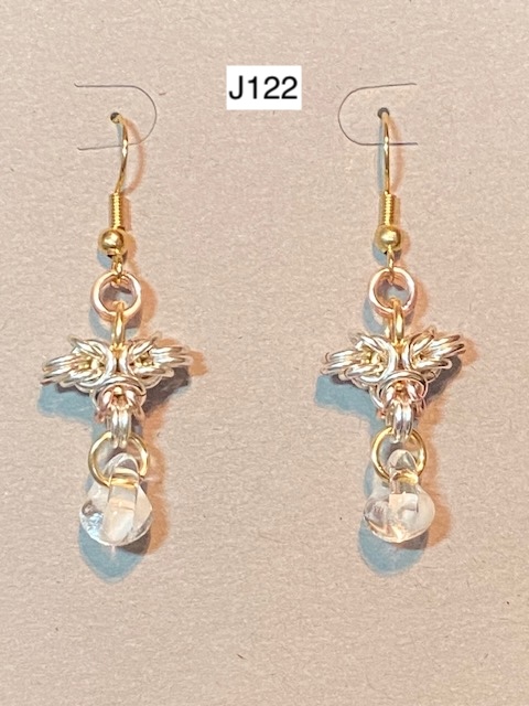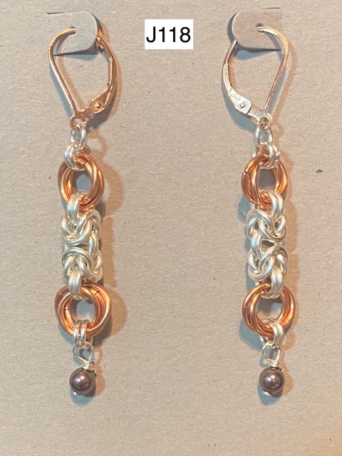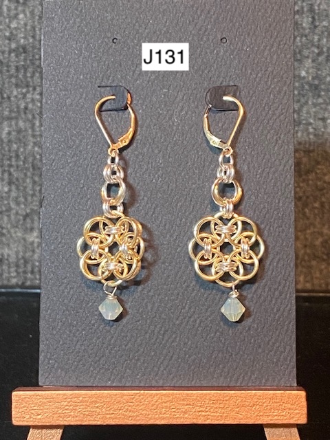 J30) Byzantine earrings with silver bead dangle -- Price: $50