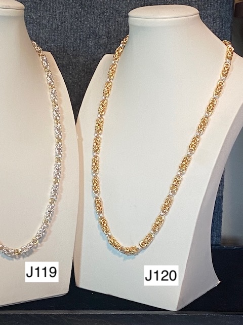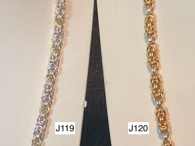 J119) Byzantine "O" Necklaces, silver colored with gold connecting rings,, adjustable 20"-22" with small lobster clasp -- Price: $150