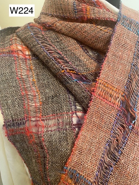W247) Scarf/shawl in 50% linen, 50% silk with hand twisted linen fringe (16" x 64"), hand wash gently or dry clean -- Price: $180
