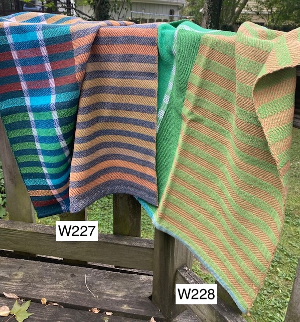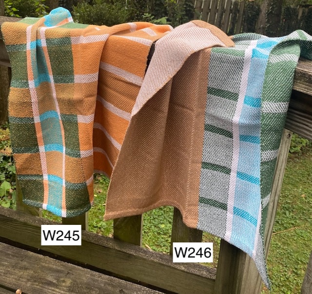 W196-W203) Deflected Doubleweave Towels ( a weave structure that allows different colors and patterns on each side of the cloth) - 100% cotton; machine wash & dry.
